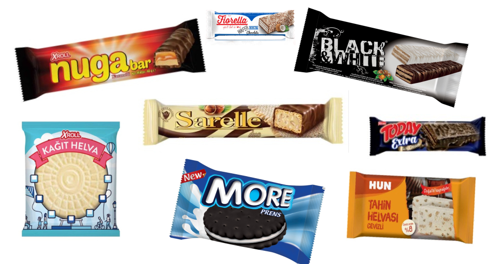 - RK 200 90° Döner Çene modelinde kek, bisküvi, ekmek, çikolata, gofret, helva, sabun ve krokan gibi ürünler paketlenmektedir.